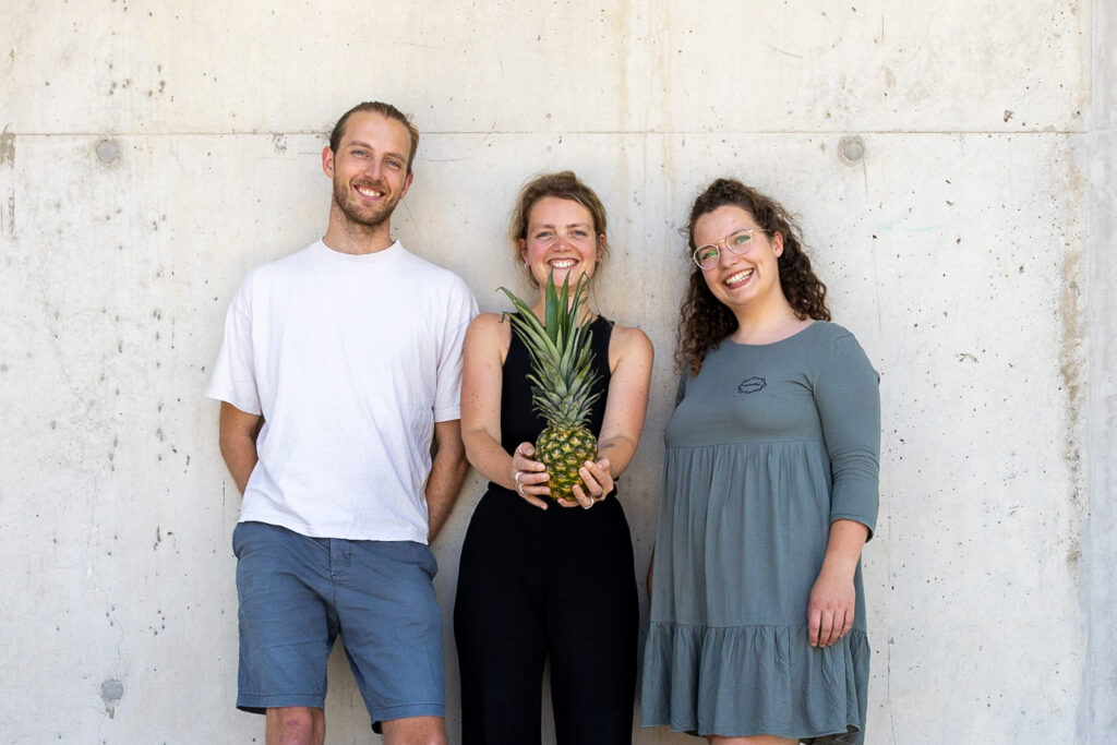 Am Anfang war das gar nicht der Plan. Als wir 2017 gestartet sind, waren wir eine Studierendeninitiative. Kontakte unserer Universität haben es uns ein Jahr später ermöglicht, nach Costa Rica zu kommen. Wir hatten damals die Idee, nicht transportfähige Bananen zu nutzen, um Produkte herzustellen. Vor Ort mussten wir jedoch feststellen, dass Bananen kein Problem darstellen, die Pflanzenreste von Ananas jedoch schädlich für die Umwelt waren bzw. immer noch sind. Sie können durch ihre Beschaffenheit nicht einfach so verrotten. Der bereits ausgelaugte Boden wird dadurch weiter belastet und bietet einen idealen Nährboden für eine Steckfliegenart. Das wiederum ist ein Problem für die Fleischproduktion. Deshalb hat die lokale Politik angeordnet, die Pflanzen nicht einfach auf dem Feld verrotten zu lassen. Sie müssen zuerst chemisch getrocknet werden und dürfen dann untergepflügt oder verbrannt werden. Dies hat wiederum Auswirkungen auf die Luftqualität und auch auf die Qualität des Grundwassers. Außerdem wird die Gesundheit der Anwohnenden und Mitarbeitenden immense beeinflusst. Deswegen haben wir uns damals gesagt: okay, da müssen wir etwas dagegen tun, weil irgendwie macht es keiner, da passiert nichts: Ja, lass mal (was) machen.
